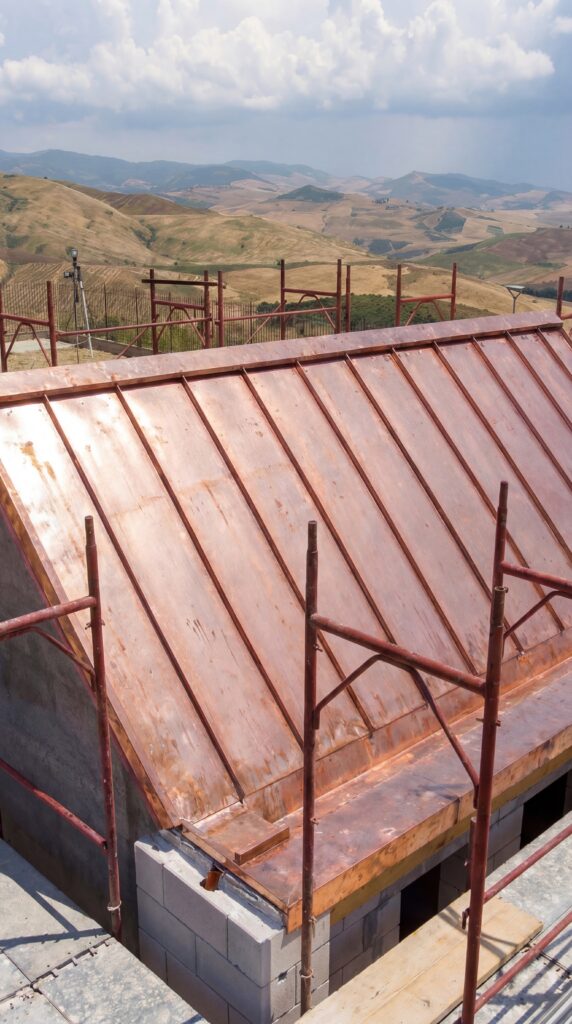 Installazione professionale di tetti coibentati e non, aggraffati e grecati, eseguita da una lattoneria specializzata in Sicilia.